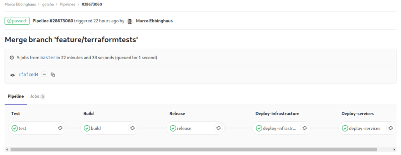 As you can see this time the pipeline only needed ~7 minutes. We saved time because the whole infrastructure was already existing and there was no need for terraform to do anything.